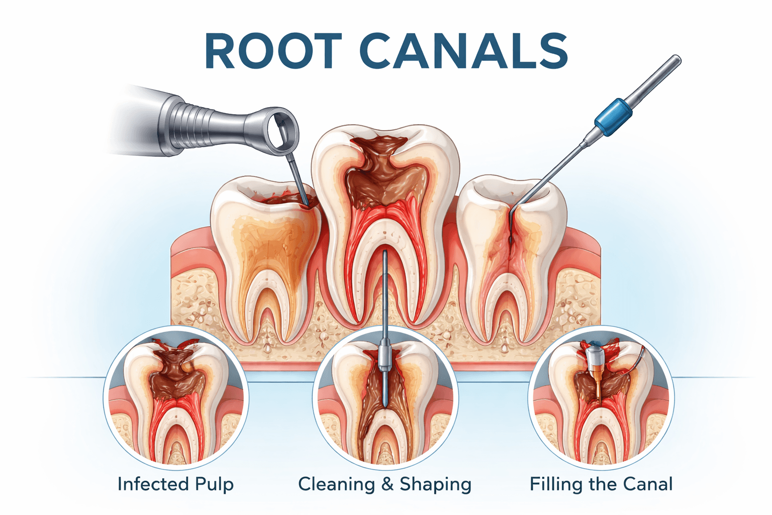 During the procedure, the dentist removes the infected pulp, cleans and disinfects the root canals, and seals the tooth to prevent further infection.